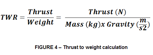 Or we can say that the thrust-to-weight ratio is the ration of the thrust force of the spacecraft as it accelerates to the weight of the spacecraft itself. It can be either a maximal or peak, average, or minimum thrust-to-weight ratio.