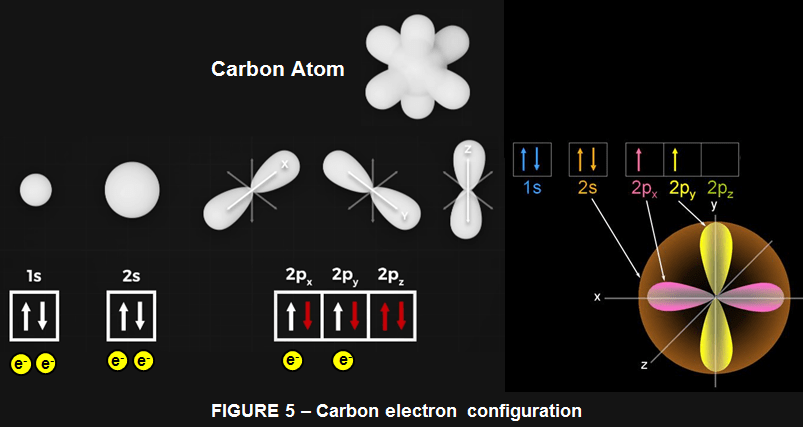 However, in bonding, carbon’s orbitals tend to merge (hybridize) to form new orbitals (sp3,sp2 or sp) with different shapes, energies, and spatial arrangements that allow it to form 4 covalent bonds. Like that electrons are shared more regularly around the nucleus and provide some interesting opportunities to form bonds with other atoms. This can get pretty complicated, but for now we just need to concern ourselves with two types: s and p orbitals.