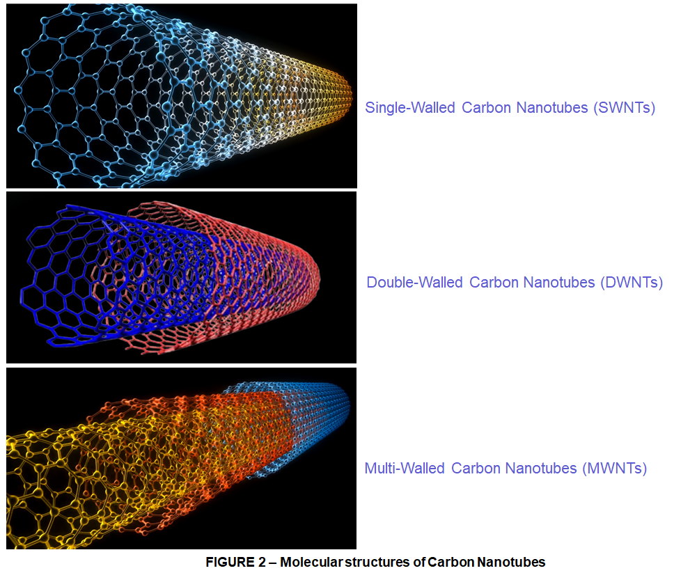 * Double-Walled Carbon Nanotubes (DWNTs) are a combination of Single-Walled and Multi-Walled – with thermal, chemical and conductivity properties that are intermediate compared to the other two.